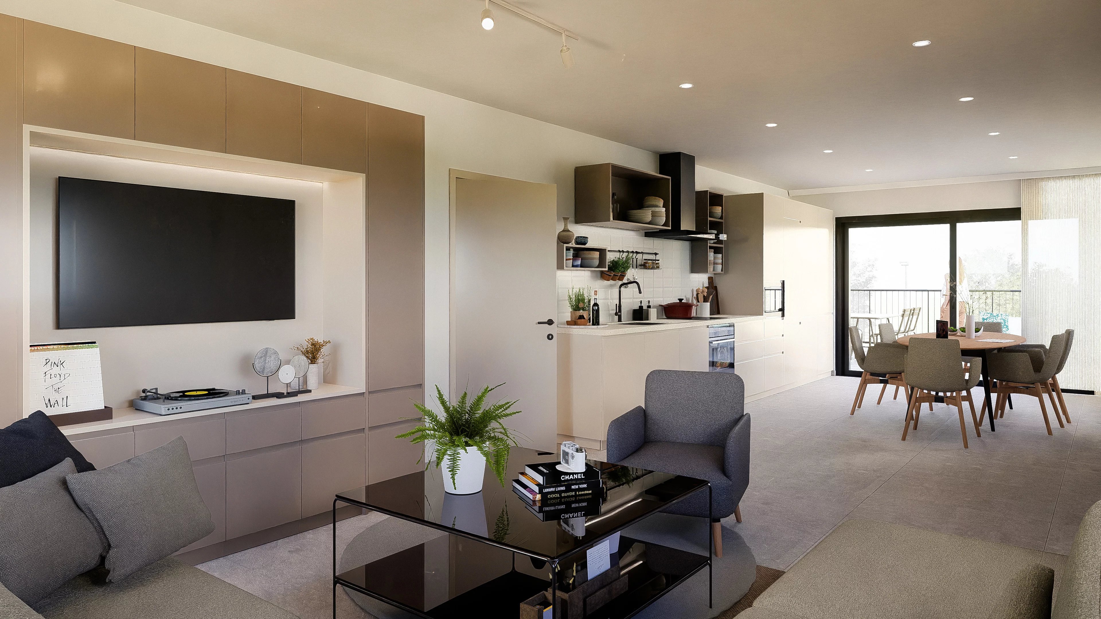 Nous vous proposons des appartements lumineux de 75 à 121 m², de une à trois chambres, avec chauffage au sol via pompe à chaleur, et tout le confort moderne. Consommation basse énergie, finitions hautement qualitatives et parachèvement sur mesure. Cavette, parking et carport (inclus dans le prix indiqué). PEB A+. Prix hors TVA et droit d'enregistrement, vente sous loi Breyne. Le cahier des charges et la brochure sont accessibles sur notre site internet.